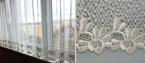 Smukt gardin med blondekant