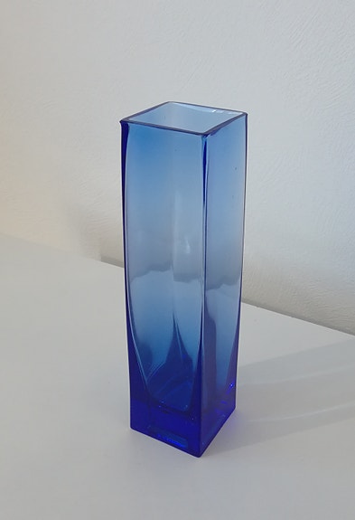 Firkantet glasvase, blå