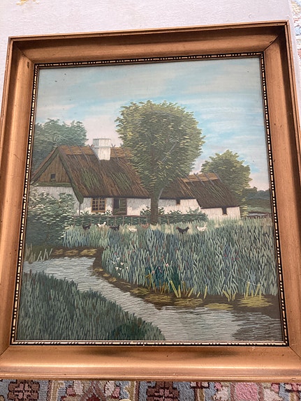 Håndbroderet billede i ramme