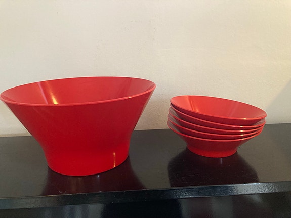 Seks røde Ørskov skåle