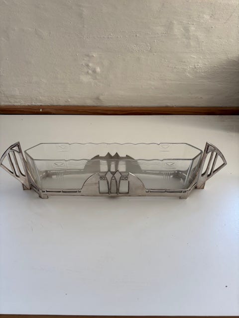 Art Deco metal og glas fad