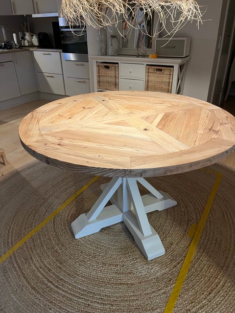 Fed rund fyrretræsbord
