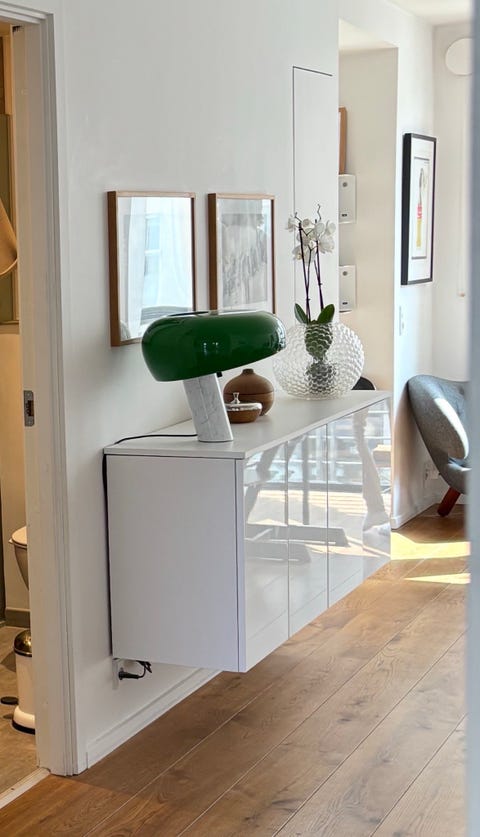 Hvidmalet skænk med to skabslåger