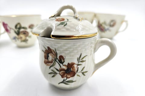 Royal Copenhagen “Frijsenborg” – 4 kaffekopper + sennepskrukke m. låg (1. sort)