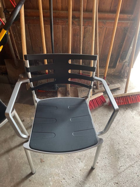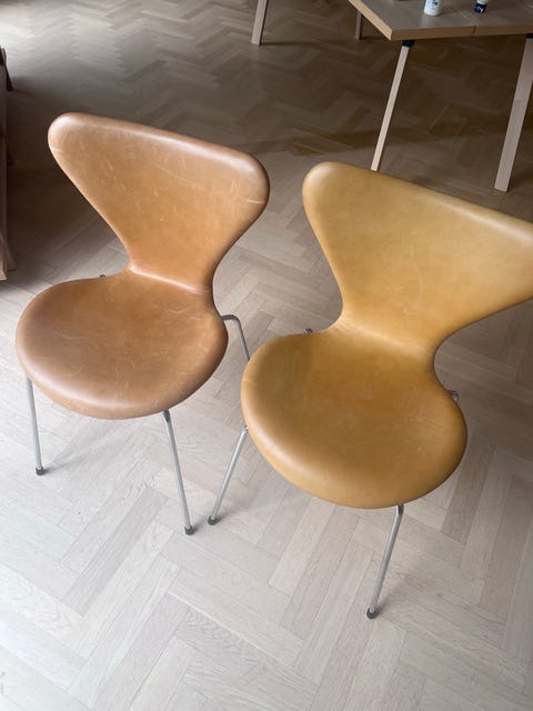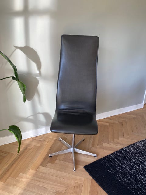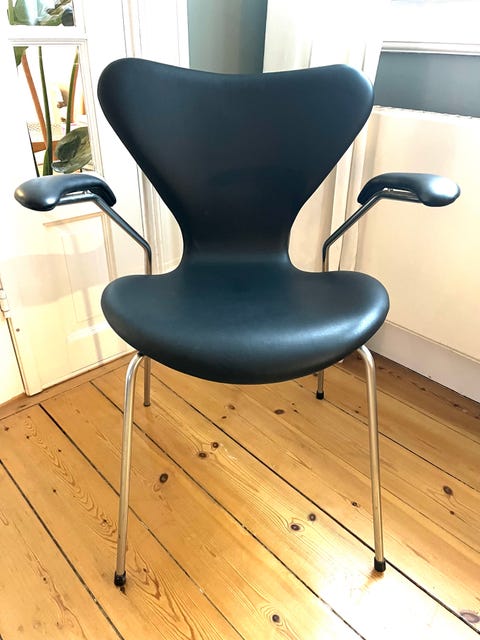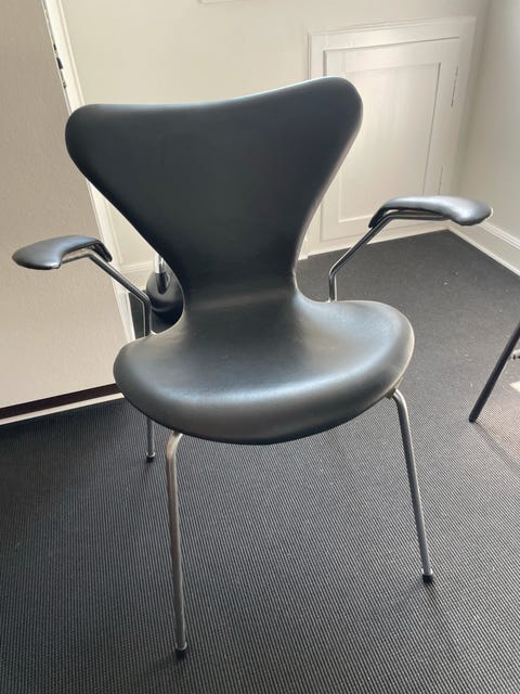 2 syverstole med armlæn betrukket med sort semianilinlæder3207Rigtig flot stand.