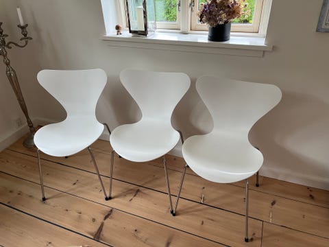 7’er stole (Arne Jacobsen) i hvid lak – meget velholdte (prisen er for 1 stol)