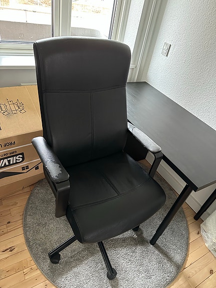 Sort kontorstol + skrivebord
