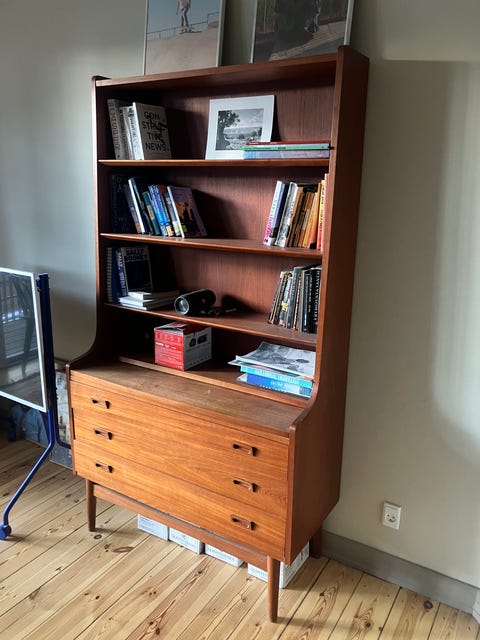 Teak reol med barskab