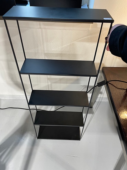 Åben reol i metal med hylder