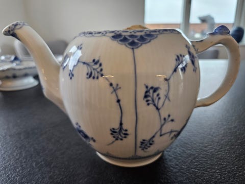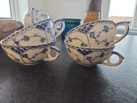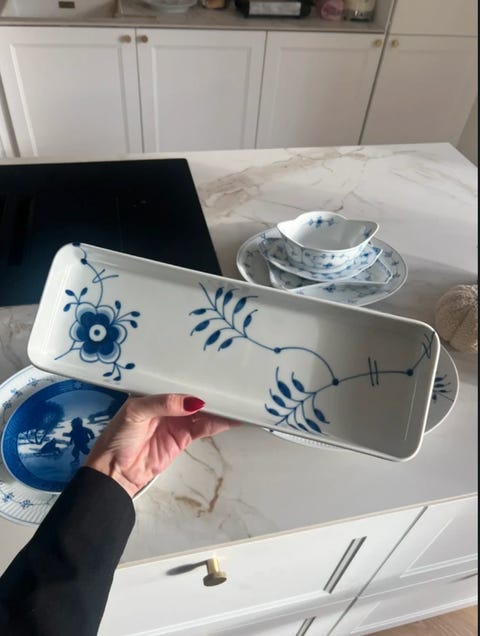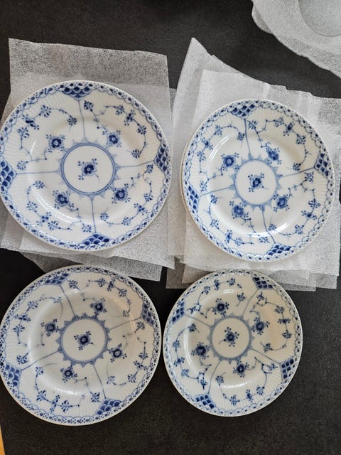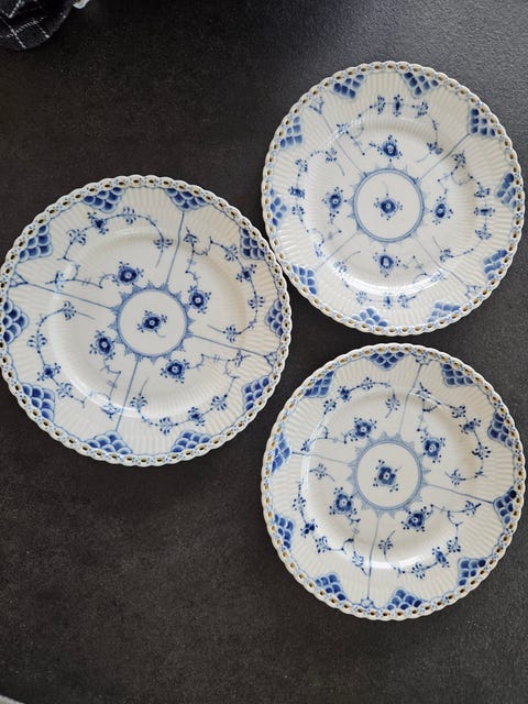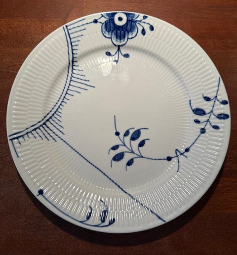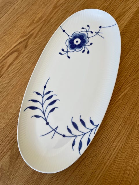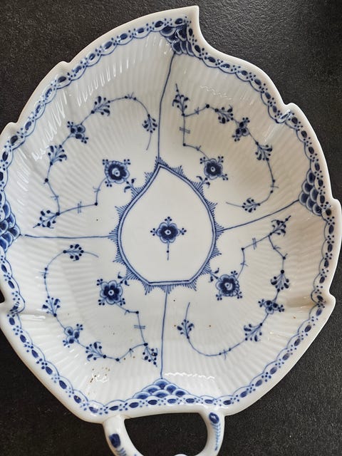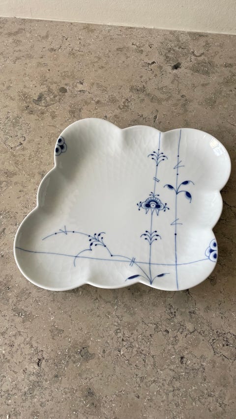 Lille dyb tallerken i Musselmalet, Riflet med tyk kant fra Royal Copenhagen.