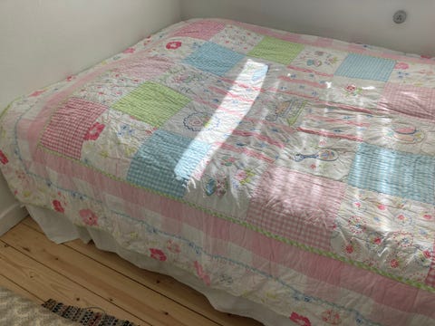Pyntepuder og sengetæppe
