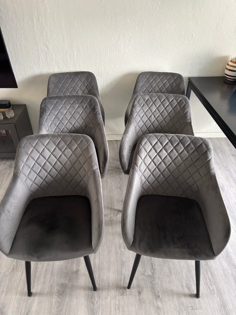 Grå velour spisebordstole