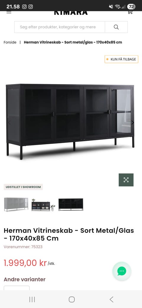Vitrineskab fra Sinnerup i metal