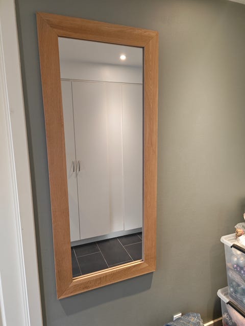 Stort spejl med træ ramme
