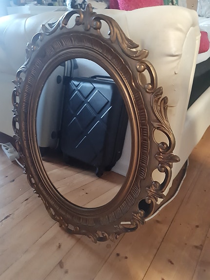 Spejl med guld ramme