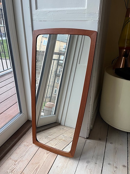 Spejl med ramme i teaktræ