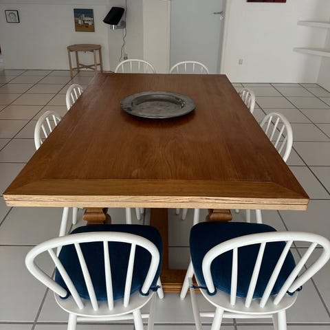 Massivt egetræsbord + 8 stole