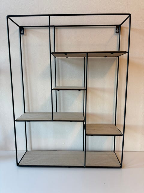 Smuk gammel væghængt reol i teaktræ