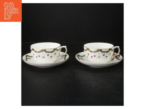 Juleinspirerede tekopper med underkopper fra Royal Copenhagen (str. Ø. 16,5 c...