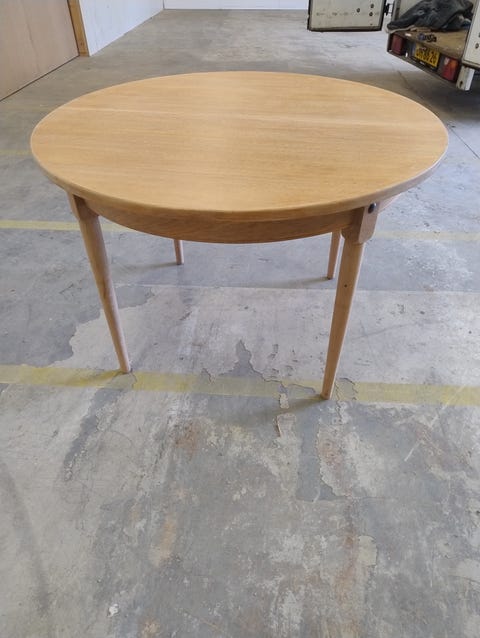 rundt egetræ spisebord