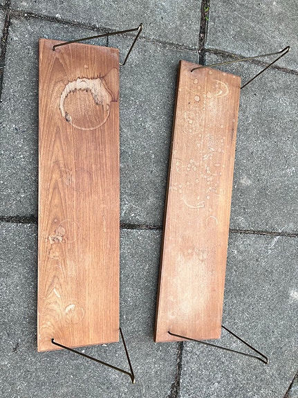 Teaktræshylder med messingbeslag