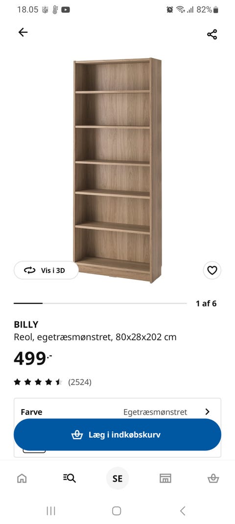 Træbogreol med 5 hylder