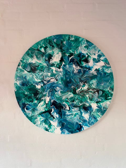 Rundt abstrakt maleri – Ø ca. 80 cm