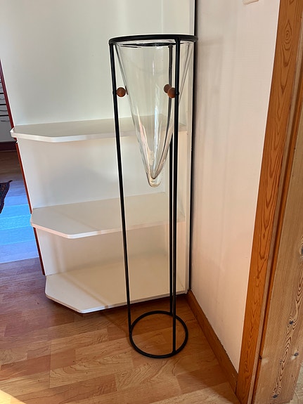 Vitrineskab med hylder.
