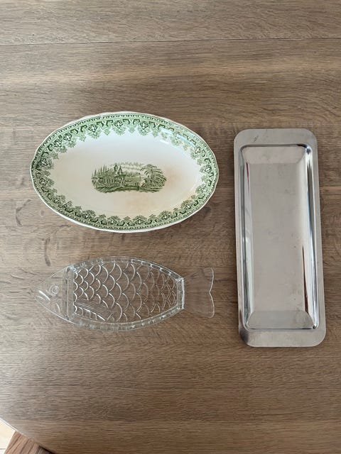 Fade og tallerkener til fosk