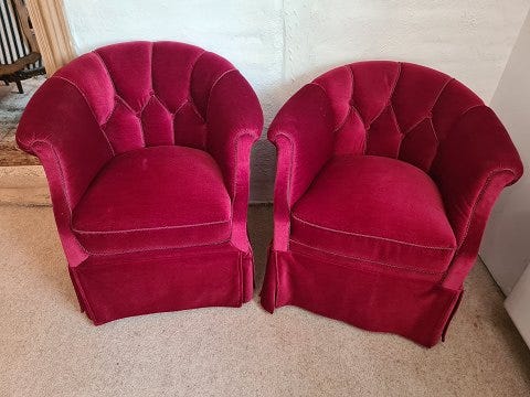 2 FINE RETRO-LÆNESTOLE I GRØNT SKIND