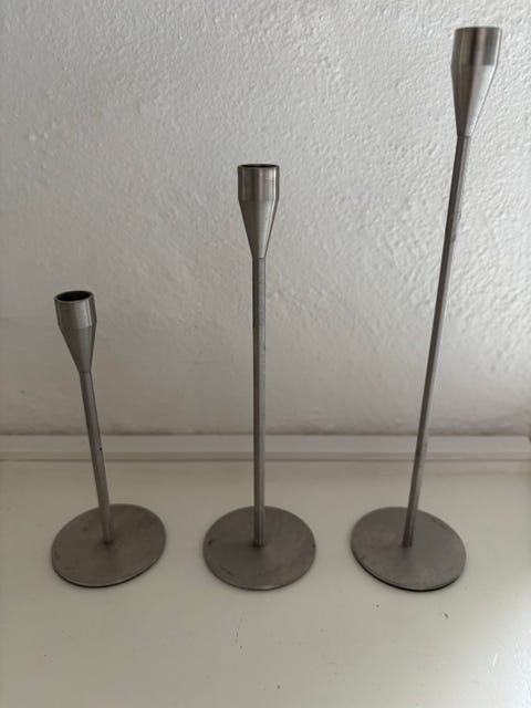 164 kr.To lysestager i metal (str. Ø 8x13,5 cm) fra Måske Piet HeinSlangerup1. nov.Orderly Shop - Gode brugte ting fra tidligere ejereFøj til favoritter.