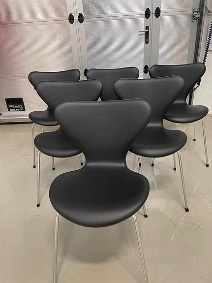 15.000 kr.Arne Jacobsen 6 styk 7er stole i classic sort læder Fritz HansenKøbenhavn Ø9. feb.Føj til favoritter.