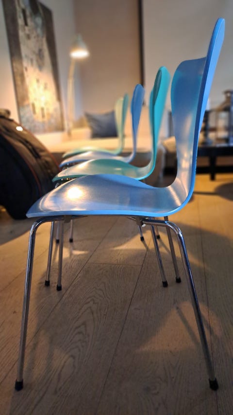 2 stk. Arne Jacobsen Dråbe-stole fra Fritz Hansen - Blå træ - skal væk før 15/10