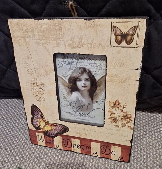 Engle billede i træramme