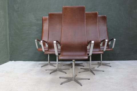 Arne Jacobsen 3207 Syver Armstole – Nypolstret i Cognac Læder & Sort Stel 7er