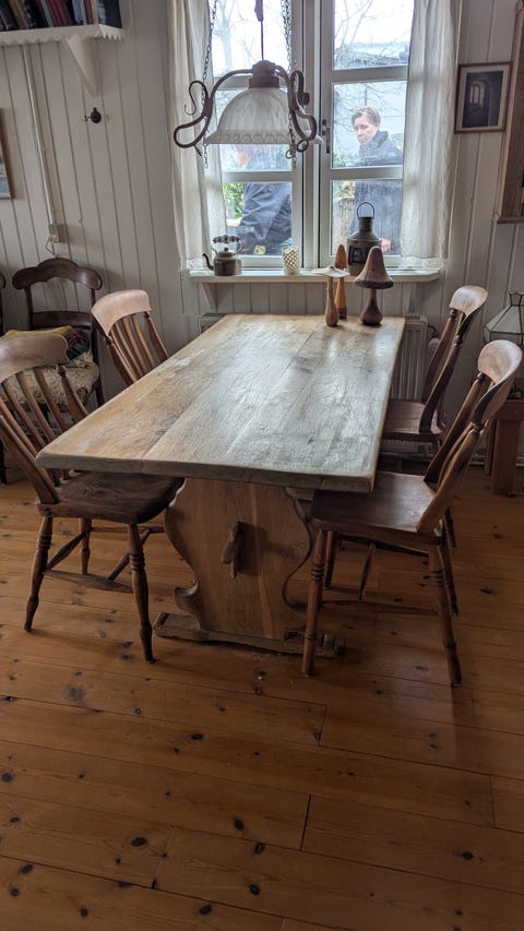 Spisebord og 4 stole egetræ