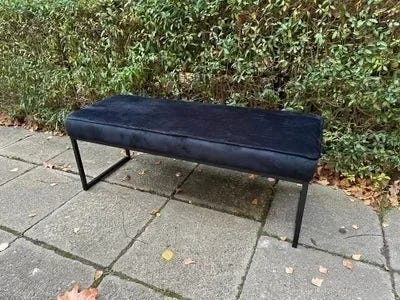 Bænk med stålben og hynde i skind