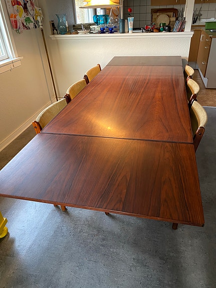 Spisebord og stole i palisander