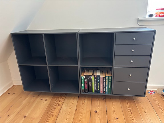 Kubik reol med skuffer grå