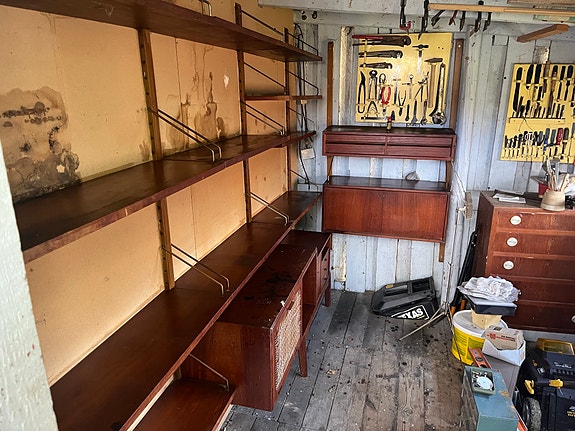 Reolsystem i teaktræ.