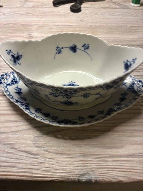 Porcelæn, Kageopsats kageskål på høj fod, Royal Copenhagen saksisk blomst 493