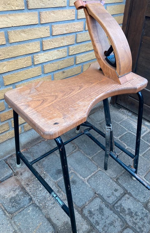 Svingarmsmaskine til læderarbejde