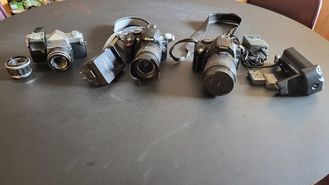 Diverse kameraer og objektiver