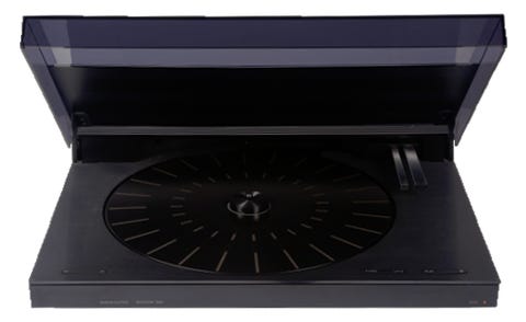 Beogram 5005 pladespiller med radio, højtalere, kontrolpanel, og fjernbetjening
