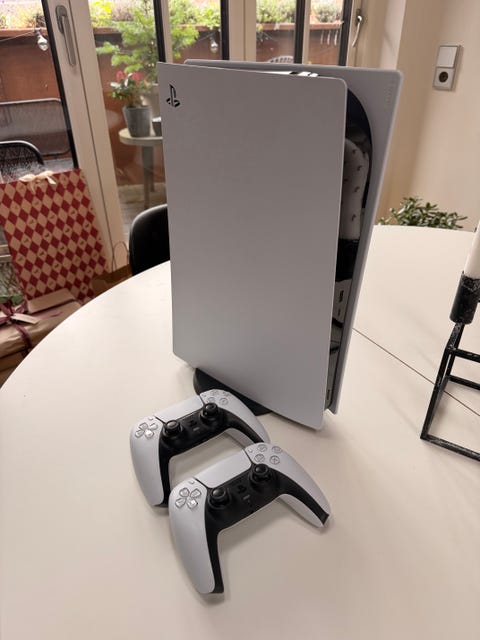 PlayStation 5 med drev + 1 TB M.2 SSD + 2 DualSense controllere + ladestation