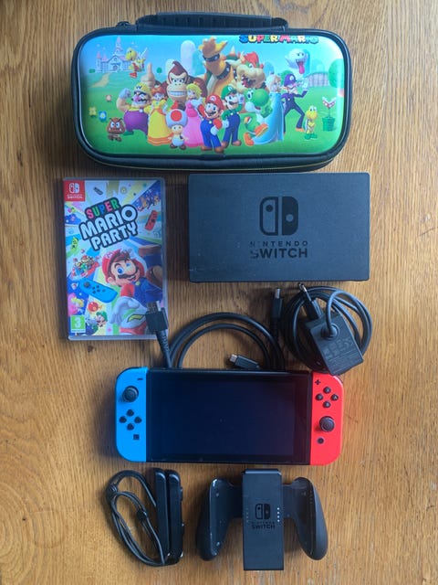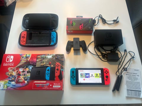 Nintendo Switch Konsol med Neon Rød og Blå Joy-Con, Mario Kart Deluxe Bundle