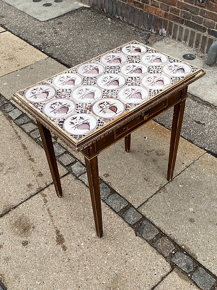 Sidebord med kakler i eg.
