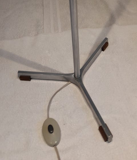 Standerlampe i teak med messing bånd