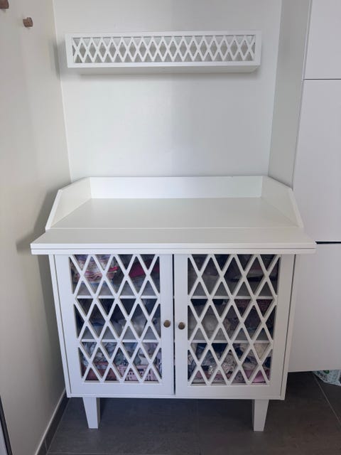 Puslebord fra Cam Cam Copenhagen inkl. hylde samt puslehynde fra Leander.