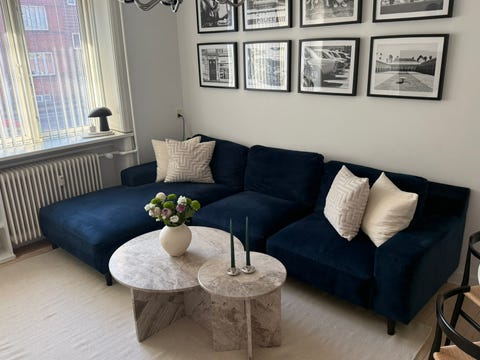 Blå velour sofaer fra Unoliving